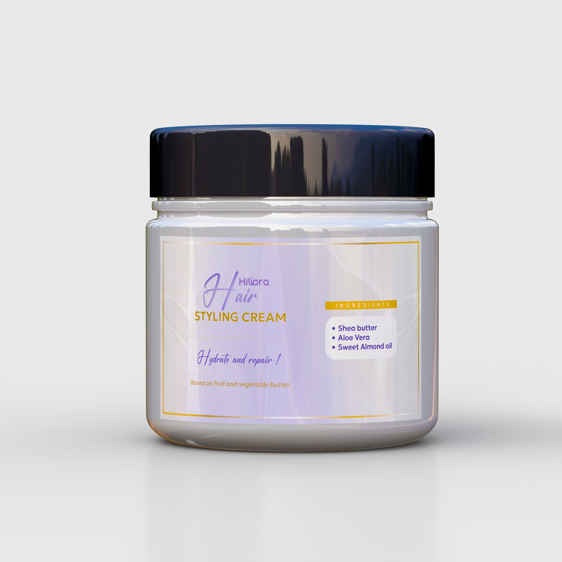 Hair Styling Cream deeply hydrates and repairs while providing natural hold and shine. Enriched with shea butter, aloe vera, and sweet almond oil, this plant-based formula nourishes your hair with the goodness of fruit and vegetable butters—leaving it soft, healthy, and beautifully styled.